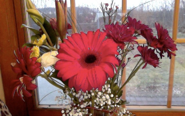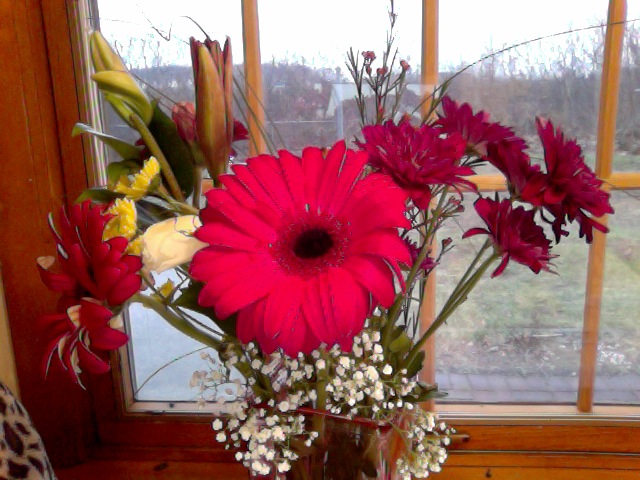 • For the second time in 3.5 weeks I left my house yesterday.  It was SO exciting!  Got good news from the doctor in regards to my healing process and saw a friend for lunch.  She bought me beautiful flowers: