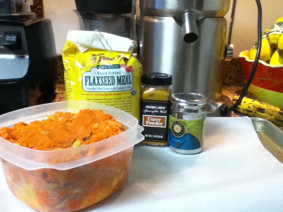 I’ve since experimented with other juice pulp: kale, spinach, ginger, and carrot.  I spiced that one up a little bit and added some salt. I’ll get back to you on those ones.  You can really use any pulp that you want and add any spices that you think will work best with the flavor of the pulp.  I don’t juice fruit very often, as I rather use my fruit in the form of a smoothie, but I just love love love pineapple carrot juice.