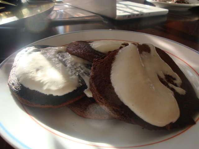 It was my mom’s birthday and she wasn’t into the idea of having a cake or anything… so, I made red velvet pancakes: