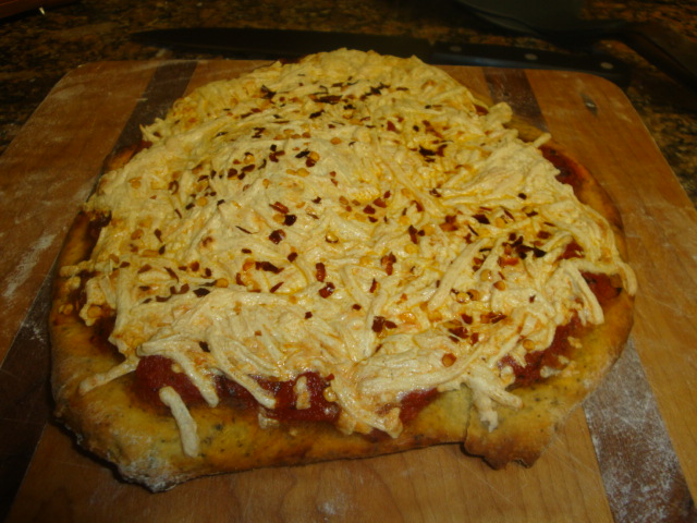 I bought a bag of Daiya Mozzarella cheese to try out on pizza, SO GOOD!  If I opt to have an indulgent dinner it consists of pizza and beer (Dogfish Head, to be exact).  I’m pumped that this cheese tastes so good on pizza, because maybe I won’t indulge in the real thing!