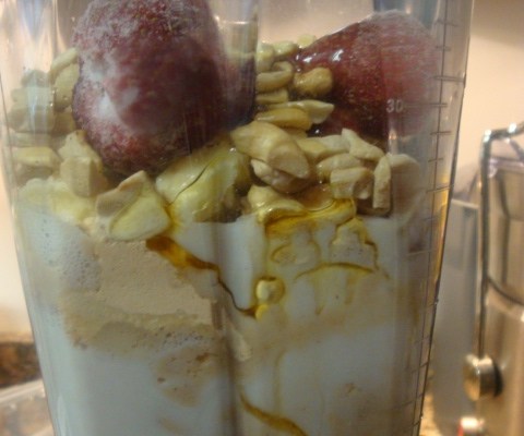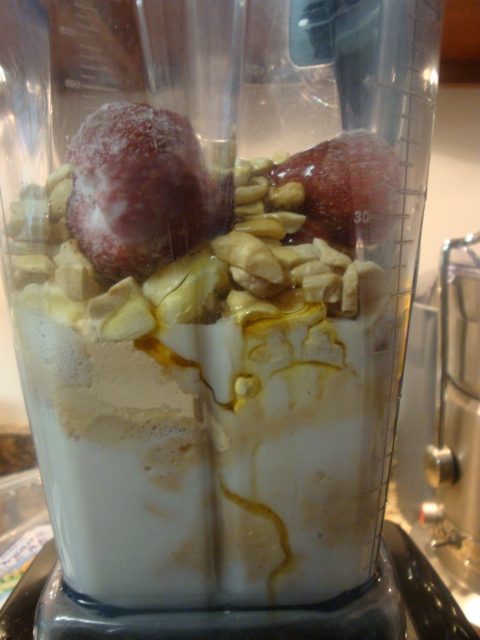 I’m really into this Strawberry Banana Cashew smoothie lately: