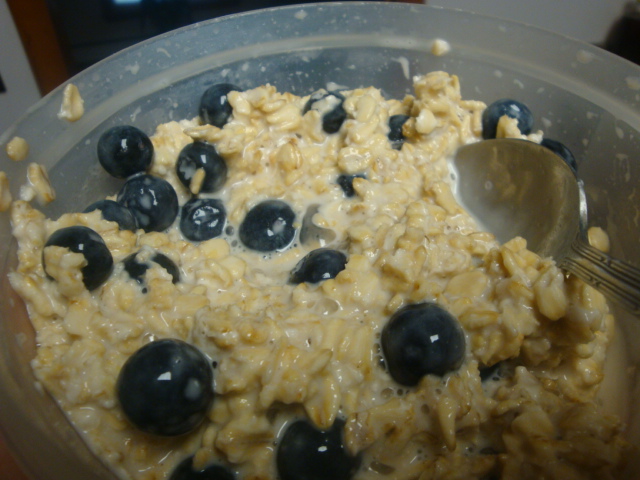 (rolled oats, almond milk, splash of vanilla, agave nectar, blueberries)